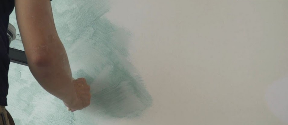 油掃要先從墻面邊角開始,以十字交叉的手法掃出紋路